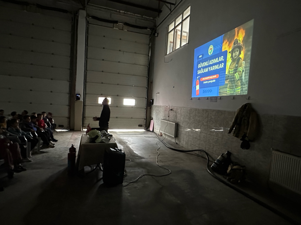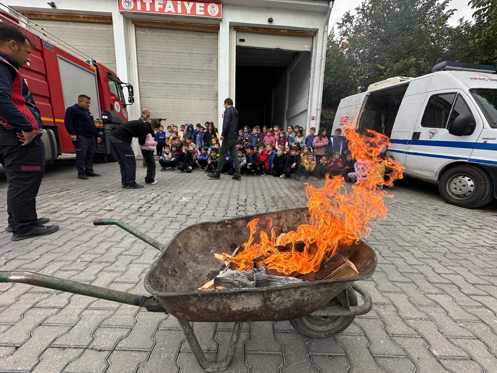 Belediyemiz İtfaiye ekipleri tarafından 3. Sınıf Ahmet Yesevi İlkokulu öğrencilerine teorik ve uygulamalı temel yangın eğitimi verildi.